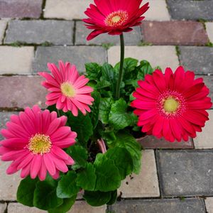 コーラルレッドとピンクの 華やかなガーベラ❤️🩷 園芸店へ行くのをグッと堪えたのに スーパーの出口で 目が合って思わずお迎えデス😍