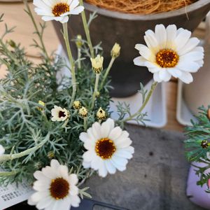 コチラもお迎え~🤭 ローダンセマム アフリカンアイズ🤍 シルバーリーフに白花… 大好きなんですぅ〰️🥰✨