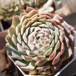 エケベリア 朱砂痣 去年の今頃は 小さく縮こまって 無事に冬を乗り越えられるか 心配になるほどだったけど 今年は子株もつけて我が家の環境に慣れた様子👍