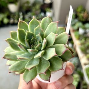 久しぶりにホムセンに行ったら初めて見るネームタグ。NATSUKIDOUさま。 多肉ちゃんの名前を見たら、これは来年赤くなるでしょ!と期待度高く買っちゃいました♡ 春もすぐそこ!みたいな暖かさに騙されないように育てたいと思います。(今週末半ばから氷点下の予報が出てました) 別名を調べたらこんな感じでした。読めません。 朱砂痣 Echeveria 'Red Hole'