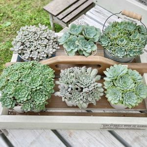 こんにちは〜ฅ՞•ﻌ•՞ฅ 昨日はいつメンさんと 蒲郡多肉フェスタに行ってきましたぁ〜🚗³₃ もりもりつぶつぶ多肉や coyaさん・Picoさんのリメ鉢やpeu a peuさんのピック 今回もたくさんかわいいものをお迎えできました❣️ 記録として… ︎✿タロック ︎✿花団錦 ︎✿レッドホール ︎✿花火