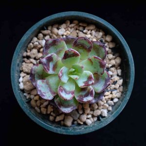 今朝のタニパト🌵🚨 最近のかわい子ちゃん、以前大和高原の多肉屋さんで購入したナンバーナイン🎱 ちっちゃくて、最近少しムチッとしてきた。縁のラインがかわいい💘