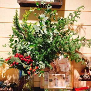 クリスマスリース。 ピンクのペッパーベリーと 拾ったクヌギでかわいらしく。 こちらは職場に飾っていただけました(* ´ ᵕ ` ) 今までに作ったクリスマスアレンジをまとめた、みどりのまとめを投稿しました。そちらもぜひご覧くださいませ。