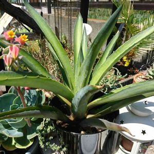 アガベ ブルーグロー。 少々開き気味でございます😓。 外側の葉 もっと上を向いて欲しいなぁ。