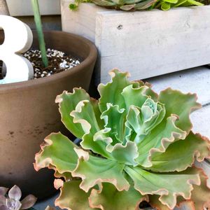 1つ前の多肉置き場の全体picで奥の方にちらっと写ってた折鶴のアップ。 大きくてやたらとムッキムキです💪 急にたっぷり水をあげた時のひび割れがありますね。 曲がってるのは成長途中のダメージなんだろうけど、個性的で好きだな~😊 大きすぎて次はどう植え替えるか悩みます🤣