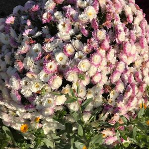 今日のお気に入り❣️ 花造りの達人の家の入り口にまぁるく 地植えしている菊の花💕