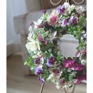 フリルパンジーのリース ピンクは可愛いくって、優しくって、ちょっと華やぐ、ヒラヒラ〜、ふわふわ〜の柔らかな雰囲気のリースになりました 箱に入れて発送します