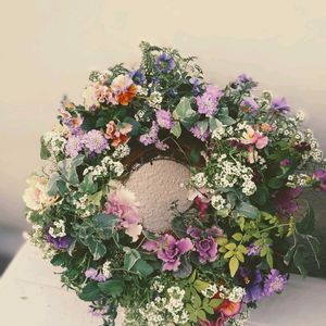 今日のお花 ケイトウ ちっちゃいケイトウとプリペッドでリース作りました〜✨ イメージはカラフルなケーキ🎂