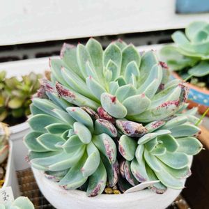 ☘桃太郎 葉挿しで頂いた子 元気に育ってます(*^^*) ☘ゴールデンブリッジ錦 ☘ブロウメアナ うちのルシーと一緒に💕 寒さに弱い子寄せ ☘ロゲルシー錦 夏危なかったけど 何とか復活ε-(´∀`;)ホッ 頑張ってくれてます☺️ ☘ワイルドファイアー まだ少し紅葉していて可愛い😍 ☘シンビフォルミス 今年の冬は不織布ありの外管理で マイナス気温にも耐え頑張ってくれました☺️ 雨水吸ってプックプク(*^^*) GSフレンドに感謝(*ᴗ͈ˬᴗ͈)ꕤ*.゚ 🏷サンキューGSの日