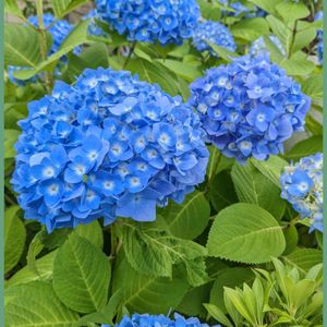 アジサイ (再度、撮影しました) こんなに早く、青色に染まりましたね。 バス停留所そばの花壇にて。 横浜市青葉区内 2023年5月4日撮影①