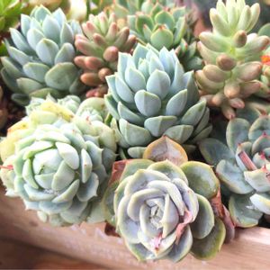 エケベリアが沢山集まっているカゴ エケベリア好きですが、 ✭になった子も多くて 集めるの躊躇した時期もありました🥺 色んな形があって見てて飽きないですね💚✨