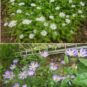 仕事してるとゆっくり庭の徘徊出来るのは終末だけ(←仕事を言い訳にしてる訳じゃ・・・🙄) ☔降る前に見回り😁 この子達も咲いておりました🎵 何種類かの色付きの都忘れだったはずが。。。 今は白1色でございます😅 (上の写真)