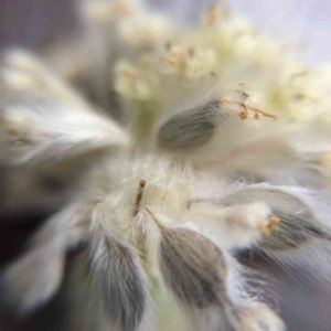 タネまでほわほわなフランネルフラワー😍 花びらが落ちて坊主になってたので、雨でぐちゃぐちゃになる前に回収〜✨ ダメ元で種まきしてみよっかな🌱