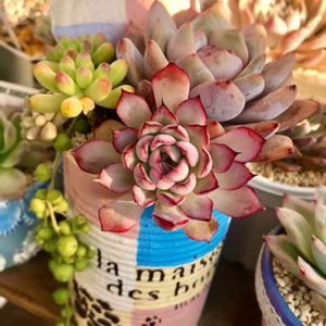 多肉日和〜☀️🤗🎶 今日は植え替え頑張ってるよ〜 でも可愛い子眺めてばかりで 捗らない、、、いつもそう😅 まん丸ピンクで可愛いでしょ〜💕
