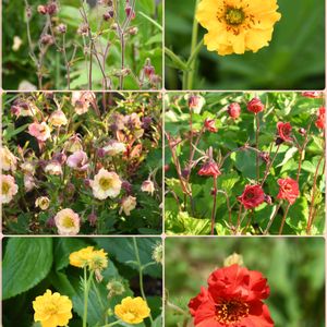 花壇に咲いているゲウムです😀 左上からリバレ、ゴールドボール、プリティコートピーチ、フレームオブパッション、ハナビ、種から育てた赤色の花です😊 他にテキーラサンライズとマイタイもありますが、花が終わったか未開花です🥲 ゲウムは宿根草として丈夫で、毎年咲いています😀 それにしてもリバレって花弁が開かないのですね😨 ずっと待っていました😅
