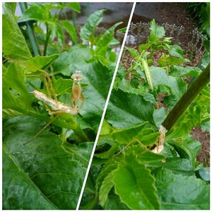 カマキリの脱皮 初めて🔰見ました👀❕ グロリオサの中に─