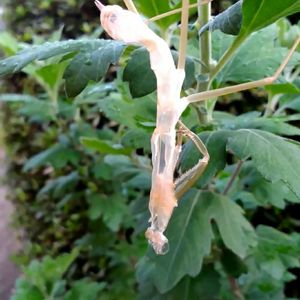 really👀 お庭のパト中にカマキリの脱皮 半透明の抜け殻でした‼️