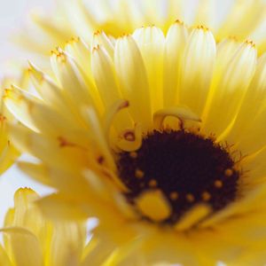 金盞花🌱スノープリンセス🌼 9月中旬に種まき‥咲き始め〜♪♪ 白と黄の優しい色合い🤍💛 好いです☺️