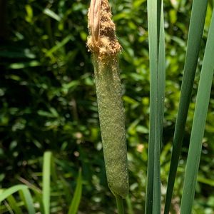 ガマ こちらは先程のヒメガマとは違い、雄花群と雌花群の間に隙間がない(*^.^*) この穂の場合、雄花群は三段になっていて、モフモフになるのは雌花のところ♪ 今年も爆発だ💥💣️