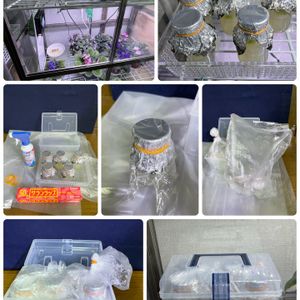 継代培養-③ この状態で薄い袋を被せ、セントポーリアと一緒に置きました。 無菌培養1瓶から継代培養8瓶作りました。 今回は注意力散漫で行ったので、コンタミ(雑菌が入る)かも😅 無菌培養の残り4瓶あるので、又トライするかもです🎶