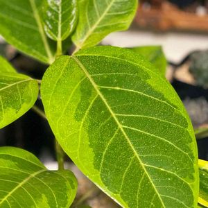 これはガジュマルなんだけど、斑入りベンジャミンと区別が付かない ガジュマルの葉の方が上向きか😯? 32.3/23.7⛅️