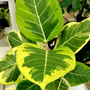 1月29日 今日のお花 🍃🪴フィカスアルテシ➖マ ライトグリーンの葉に鮮やかな黄色の斑が入ったフイカスアルテシマです♪ 銀行に入った入り口付近に大型の観葉植物が置いてありました。 🏷️2のつく日は斑入りの日
