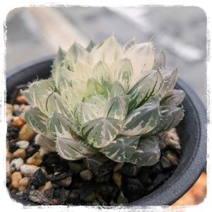 根本モッコモコ子沢山の姫美人錦さん⚘⠜ あれ〰️てっぺんこんなに白かったっけ〰️⋯ もっと緑が多かった気が⋯ ま♡綺麗だしいっか♡ 葉焼けも少々しとるけど 元気だしいっか♡笑 今日時間あったら株分けしてやるぞ〰️(੭ >᎑<)੭ その前に 汚鉢を撤去しなくては⋯( ´ㅁ`; ).。oO