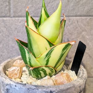 サンスベリアのタワーちゃん✨ 大好きな黄色✕緑😍 長年探してたうちの1つをGET😆🙌 斑の入り方が好みの子を見つけてお迎え🎶 糊斑や縞斑と、斑が無い部分も有り✨ 見る角度で姿が違う子は魅力がいっぱい🤤 ホントはシャインタワーを探してたんだけどなかなか無くて、名前が"シャイン"が付かない"タワー"だけのを発見😳 教えて貰ったら、シャイン付きはピングイキュラの交配で、姿としてはタワーだけの方が好きかも🤭