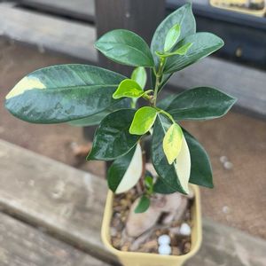 斑入りのガジュマル 剪定を重ねて斑入りの葉が少しずつ増えてきました。 いつか斑入りばかりの葉になる日が来ますように💕