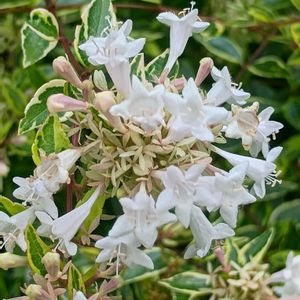 斑入りのアベリア咲いてました 花も斑も白いので、明るく感じます😊