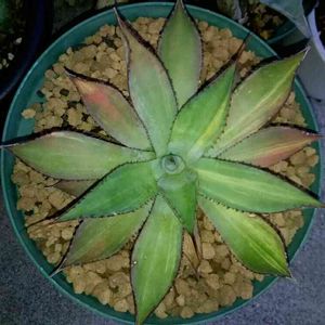 アガベ グアダラハラナ錦。 植え替えて葉焼けしてたけど、だいぶ調子戻ってきた! 斑回りも少しずつ良くなってきた気がします(^^)