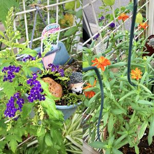⛅️☁️ 晴れ時々 曇り ~ 涼しい朝 っていいなぁ♪ ⸜(*ˊᗜˋ*)⸝ 今咲くお花は 💟👾 デュランタと 🧡🌼 ジニア 色鮮やか︎︎𓂃⟡.·✧̥