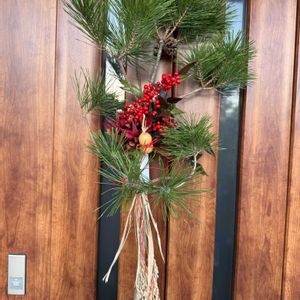 根引松の玄関飾りは、今年入荷した150本の中から枝ぶりの良いものを厳選して制作しています この松は根が付いたままで飾ります。 根が付きている→根付く→その地に根付くという意味と、根が付いているのでこれからますます成長していくと言う意味で飾られます。とても良い由来ですね。