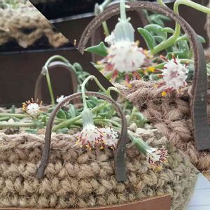 植え付けて間もないけど、ネックレスのお花が咲いてます🥰 左 グリネの花 右 ドルフィンネックレスの花 マクロレンズが使いこなせません😭