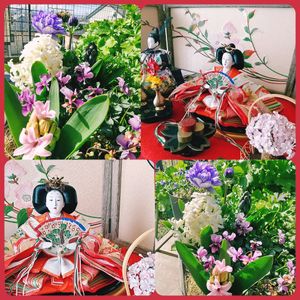 今日、富士山麓と埼玉県では旧暦の桃の節句です🎎 我が家の花畑には、咲き分け源平桃の花が咲いてます 孫の雛飾りは一体型で、今年も今日まで飾りました❣️