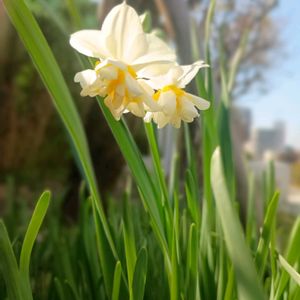 お散歩道のお花さんです。💛🤍 可愛い日本水仙さんが咲いていました!💛🤍 とっても可憐です〜!🥰💛🤍😘