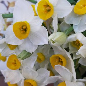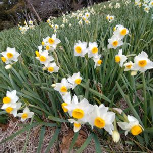 いつもの散歩道🚶♀️➡️ 寒空の下、 日本水仙が綺麗に咲き競っているのを観て、元気を貰っています😃