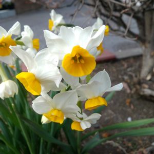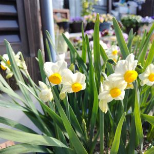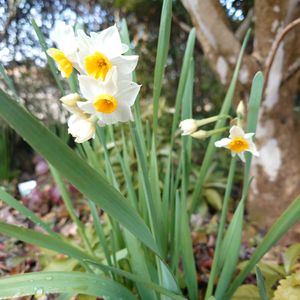 2月中旬 去年より1ヶ月遅れで日本水仙が咲いてきました。 プランターの位置を去年とかえていたから遅れたのかも。 房咲きになっていて、良い香り。これからも咲きそうです。