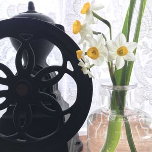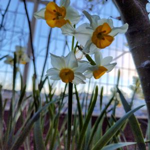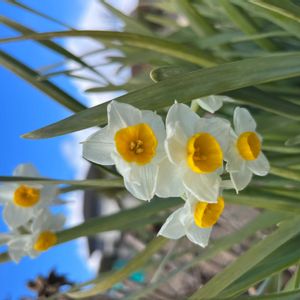 毎年「日本水仙」の清楚なお花が咲いて、春の先駆けを感じます。鳥さんも来ました。📸🌼👰♀️🌿🦜😊😄🌞✌️
