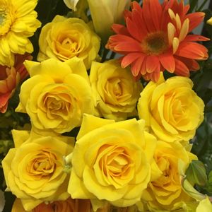 ご近所さんの開店祝いのお花🌼🌸💐 Orangeガーベラさんが手を振っているみたい🤗 ちょっと沖縄行って来ますー✈️ グリーンあったら撮ってきます✨^ ^ 2020.2.20 沖縄旅