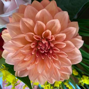 こんにちは𓂃 𓈒𓏸𑁍 頂いた花束に入っていたダリア❁⃘*.゚ 直径20㌢程存在感があるけれど 淡いオレンジ🧡アンティークな感じが 優しい⸜♡⸝ ダリアって100種類以上もあるんですね。 今更に知りました𓂃◌𓈒𓐍