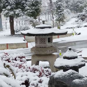 関東地区では 珍しく降りました⛄☃️⛄ 雪見灯篭もやっと華咲きました