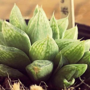 最初に買った多肉さん、ハオルチアオブツーサの何なのかわかりません。クリスタルプラントとして売っていました。 雫石のような、違うような。