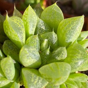 おはようございます☀️ ハオルチア🍀雪の華🍀 いつ見ても優しい風合いのキレイな子🥰 良い天気ですが冷たい空気の朝になりました。 北側の玄関から出てすぐに厚手のコートに替えに戻りましたさむい(((゚〰゚)))
