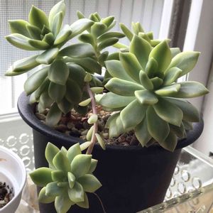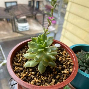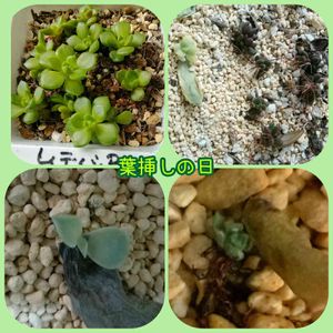 おはようございます☔ マンボウで昨日から月末までお休みになっちゃいました😅 おとなしく引きこもりますが高校野球も雨で延期だし😣 昨日は娘の家でバーベキューする予定が雨の為家の中で焼肉をしました😊 今日はmakimayちゃん&みらいちゃんの 毎月13日14日は葉挿しの日に参加しま〜す🌱 右下の七福神の葉挿しの生き残りです💦 たくさんの葉挿しはこの子ともう1つだけになってしまいました😓 やっぱり七福神の葉挿しは難しいです😣 何とか頑張ってほしいですが微妙💦