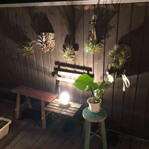 屋上パーゴラガーデン メッシュパネルを天井と手すりに取り付けました。明日は遮光シート(防風を兼ねる)を取り付ける予定です👍 いざチラビカクたちのスペースが準備出来ると、早く外に出してみたくなるもので、今日から試験的に屋上パーゴラに少しずつ植物たちを出し始めることにしました。夜間も10℃を下回らない日は出しっ放しにして、5℃下回る時は強いものだけを残し室内に取り込みます。 現在の気温は12℃、少し肌寒いけど、あったかいコーヒー飲みながら、子供と一緒にハンモック揺られながらの植物鑑賞タイムです😊