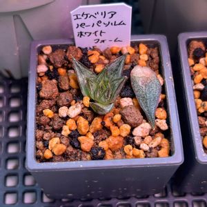 久しぶりに行ったホームセンターにて、徒長しまくっているしカイガラムシもいるけど…黒っぽい葉に白い模様がクールで気になるエケベリアを購入しました。 エケベリア・パーパソルム・ホワイトフォームという品種だそうで、元は1480円だったようですが…徒長とカイガラムシ付着、あと元気消失気味なせいか、クリアランスコーナーで200円くらいになっておりました。 我が家にいるシャイニングパールやロイ・ローザとは違う系統のパーパソルム・ホワイトフォーム。 駆虫・乾燥後に挿し穂と葉挿しにしました。うまく元気な株に蘇りますように!