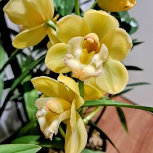 本年も宜しくお願い致します🙇✨️ 2025年最初はシンビジウム!🌼 石田蘭園さんのテーブルシンビジウム るふぉーる😊 2023年に見切り品でお迎えしたのですが、2024年は花芽が出ず…漸くお花が上がりました🥹⤴️⤴️