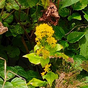 今日のお花 アキノキリンソウ 秋の麒麟草 茎の先に纏まって 咲いている姿が 愛らしいです💛* 先月.南阿蘇で🤳