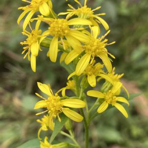 アキノキリンソウ キク科アキノキリンソウ属 多年草 在来種 北海道、本州、四国、九州に分布 日当たりの良い低山の草原や林縁に育つ。 名前は秋に咲く花がベンケイソウ科のキリンソウ(夏に開花)に似るとして、アキノキリンソウと名付けられた。 別名はキンカ、ヤブキンカ、アワダチソウ 花期8〜11月 草丈は最大で85cm程度で、茎は真っすぐ伸びる。 葉は互生し、細長い卵形で、縁には鋸歯がある。 花は花径5mmほどの黄色の小花が穂状に集まって、上から順に咲く。 花言葉は「用心」「警戒」「予防」